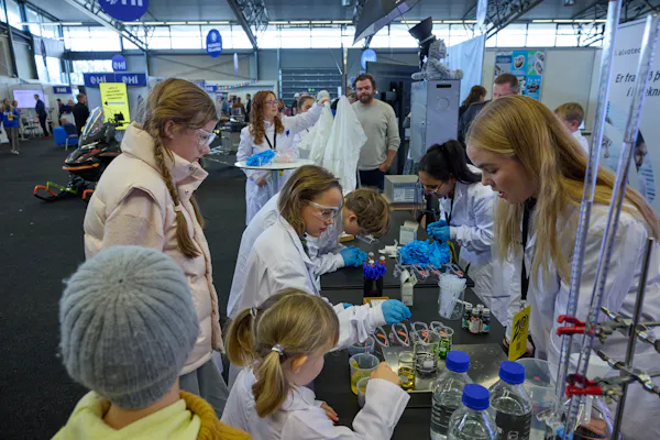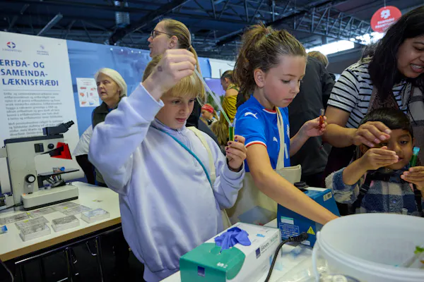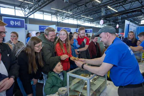 Gestir fengu að skoða og prófa ýmis tæki og tól sem notuð eru við rannsóknir, skoða afurðir verkefna og spjalla við vísindafólkið.
